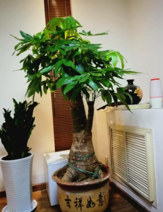 2.选花盆:过于深,过于大的盆不好,一些大的盆栽,是那种很深很大的陶瓷盆,那种盆真不适合养发财树,因为发财树根系不发达,那种盆透气性又差,很容易因为浇水问题导致烂根,所以建议可以采用大盆套小盆的方法来养发财树,可以解决积水问题。